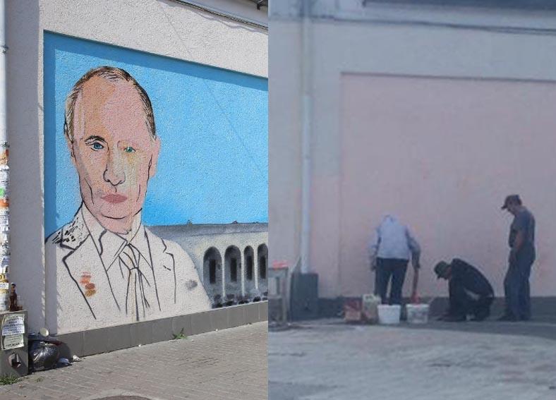 В столице Крыма стену с испорченным граффити Путина закрасили