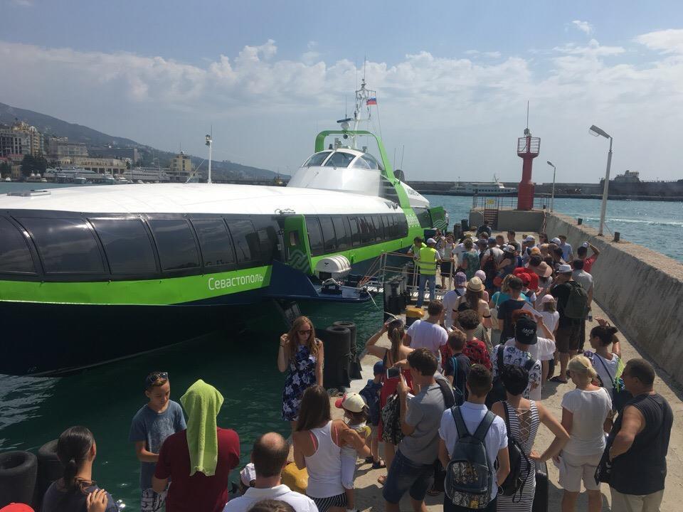 Пассажиров первого рейса "Кометы" в Ялте встретили хлебом и солью (фото)