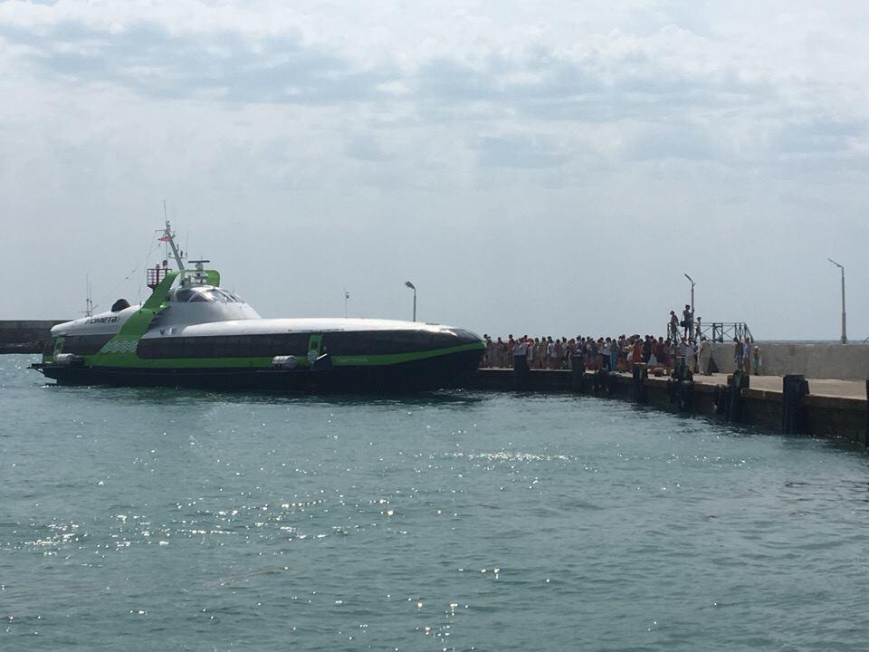 Первая в современной истории Крыма "Комета" прибыла из Севастополя в Ялту. Об этом на своей странице в Facebook сообщил глава администрации Ялты Алексей Челпанов. "К Ялтинскому берегу пришвартовалась первая в современной истории «Комета»! Как и полагается, ее пассажиров встречали с хлебом и солью, а первому гостю, который сошел на причал, вручили памятный подарок. Все мы рады восстановлению такого удобного морского сообщения между Севастополем и Ялтой", – написал Челпанов. По словам главы Ялтинской горадминистрации, морское сообщение на маршруте между Ялтой и Севастополем будет пользоваться популярностью у жителей и гостей Крыма. Подписывайтесь на Кафу в Facebook, страницу ВКонтакте и группу в Одноклассниках. А также на канал Youtube и Telegram. Новости по теме