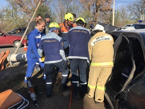В Крыму легковой Mercedes "снёс" столб, водителя деблокировали из покорёженного авто спасатели (фото)