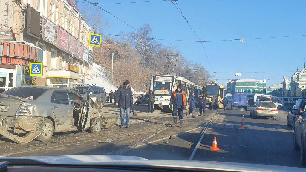В Иркутске рядом с железнодорожным вокзалом трамвай с отказавшими тормозами утром в пятницу столкнулся с девятью машинами. Пострадали два человека, сообщили в пресс-службе областного управления МВД. По предварительным данным, нетяжелые травмы получили водитель одного автомобиля и пассажир другого. Вагоновожатый трамвая заметил, что тормоза неисправны. Он высадил пассажиров и поехал в депо на ремонт. По пути тормоза совсем отказали. В районе улицы Звездинская трамвай повредил две легковые автомобили, а потом на спуске столкнулся еще с семью, сообщили в МВД. В связи с ДТП проведут проверку. Мэр Иркутска Руслан Болотов поручил проверить весь подвижной состав МУП "Горэлектротранс". Подписывайтесь на Кафу в Facebook, страницу ВКонтакте и группу в Одноклассниках. А также на канал Youtube и Telegram. Новости по теме