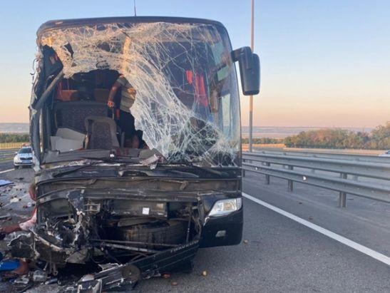 Автобус, ехавший из Крыма, врезался в грузовик в Ростовской области