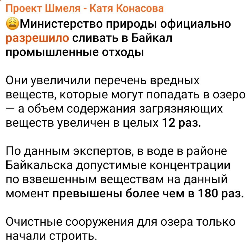 А тем временем в Байкал разрешили сливать то дерьмо, что у нас сливают в море:
