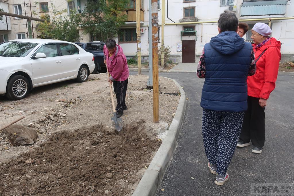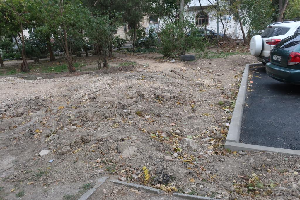 Во дворе двух домов я застала целый консилиум из жителей, которые как раз обсуждали перспективы благоустройства двора в создавшейся ситуации. А одна из женщин просто копала и выравнивала под клумбу каменистую почву. Кстати, в некоторых уголках двора тоже были видны следы подобной деятельности. То есть, сами жили по кусочку, по дециметру, врукопашную в полном смысле этого слова приводят в порядок свой двор после муниципального «благоустройства».