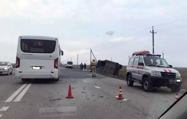 Смертельное ДТП: грузовик в Крыму наехал на легковой автомобиль и перевернулся