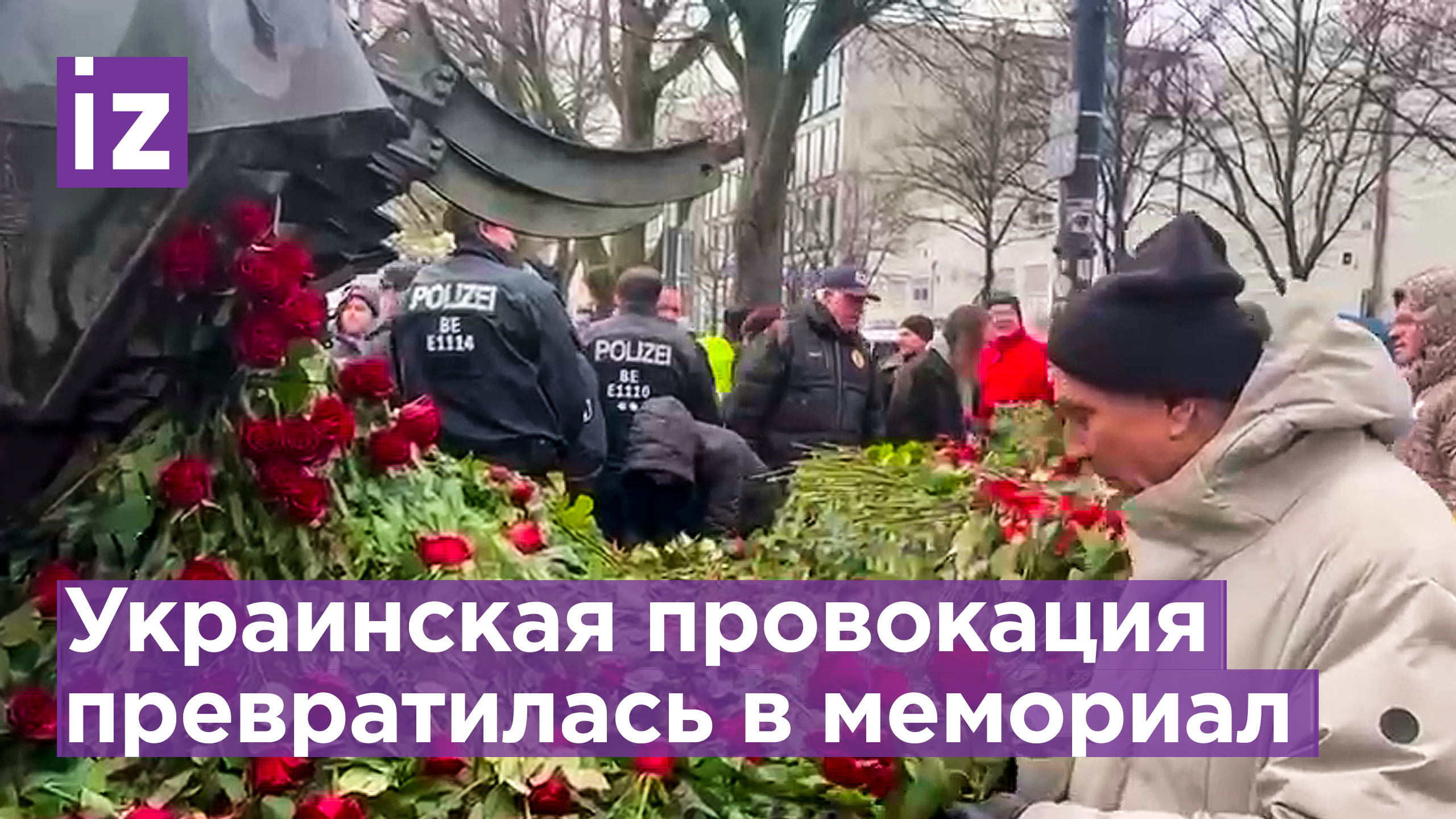 Российский подбитый танк и его гусенницы в кровавых цветах действительно очень даже хороший получился мемориал, символизирующий то, сколько же российские танки снова пролили не только чехословацкой, венгерской и украинской крови, но и даже своей так называемой "русской". Ведь у бывших россиян, живущих теперь в Германии, наверняка же есть погибшие в Украине родственники. И поэтому в Германии никто не мешает возлагать цветы в память о всех погибших в Украине так, как это запрещают делать нацисты в России: