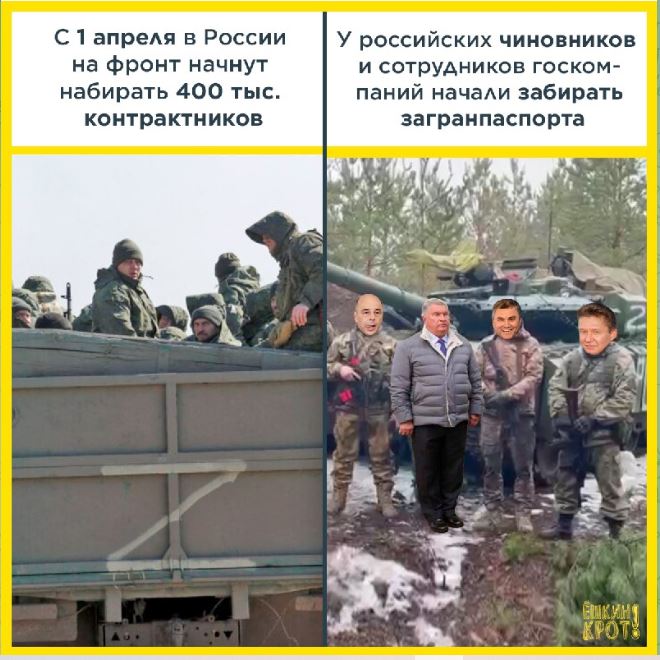 К слову, в России, по разным оценкам, более 2 млн чиновников. Чем не готовый мобилизационный ресурс вместо куда-то подевавшейся регулярной армии и сотень тычяч лишь недавно пополнивших её чмобиков?