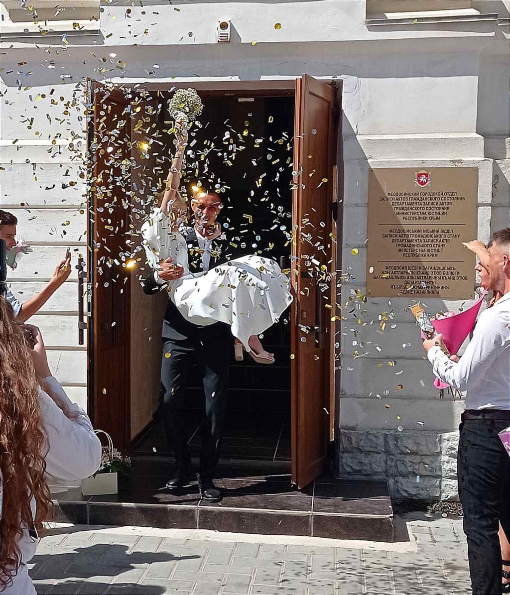 Эльдар и Виктория познакомились на стадионе 5 лет назад. Командой на команду они играли в футбол! Когда Виктория забила гол, молодой человек сразу обратил на неё внимание. Это была любовь с первого взгляда. Переписывались, встречались, но решили зарегистрировать свой брак именно в июле 2023 года. Предложение Эльдара было именно крымским. Когда они с друзьями возвращались после отдыха и решили сделать фото на фоне красот Судакской серпантинной дороги, Виктория просто не ожидала, что увидит Эльдара, стоящего на колене, в руках которого было кольцо. После этого романтичного предложения, она, конечно, сказала «да».