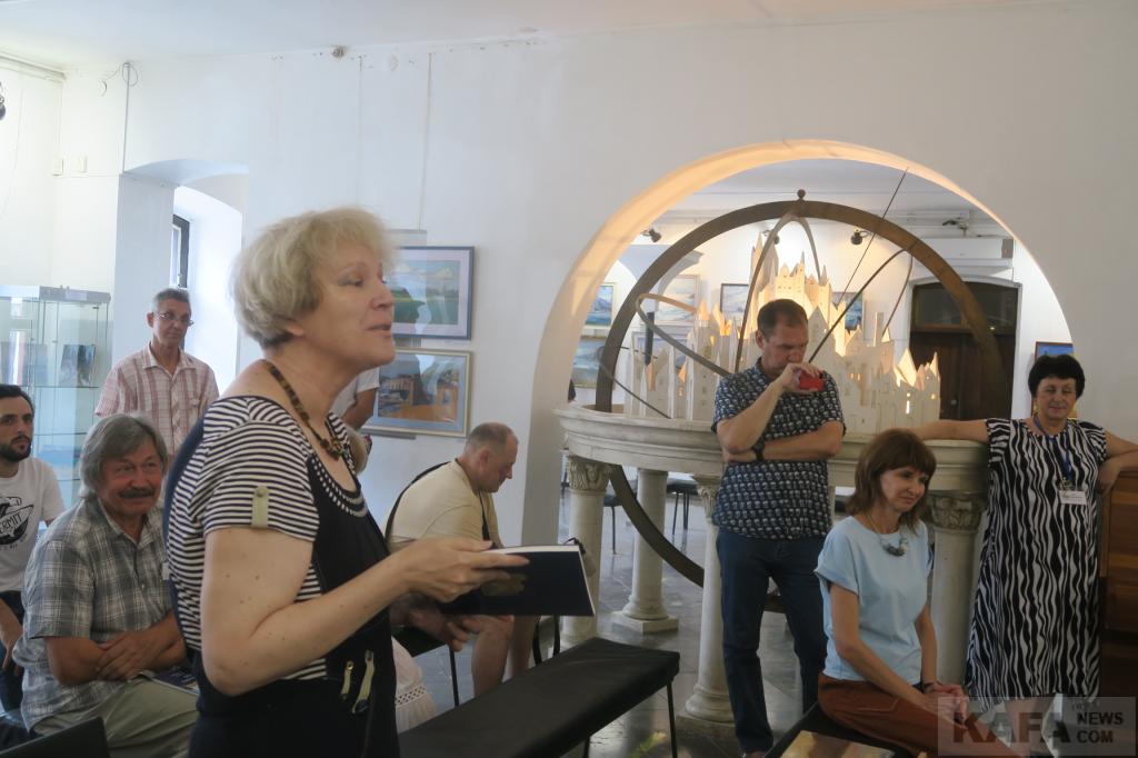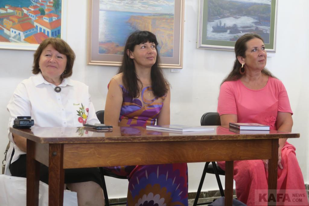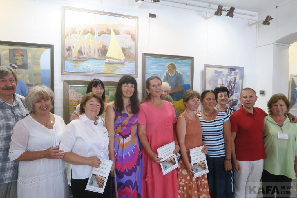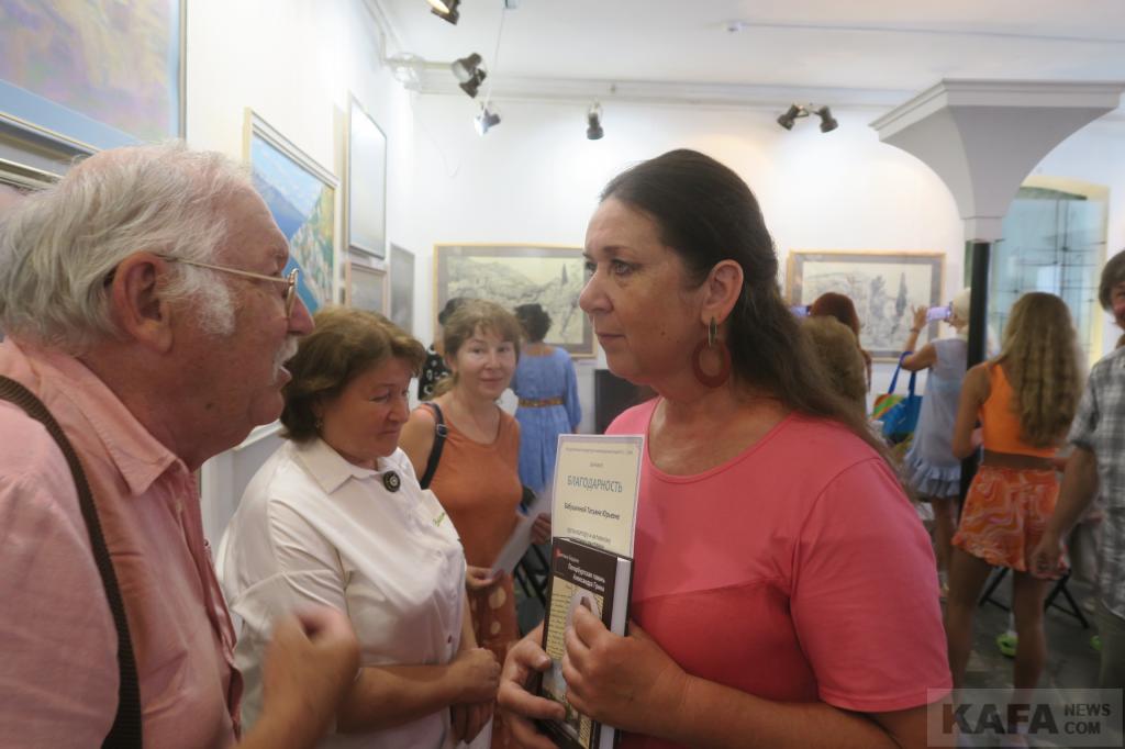 По сему представительство музея в этот воскресный день, 9 июля выглядело весьма солидно и массово. А это - заместитель директора по научной работе Светлана Колотупова и научные сотрудники всех рангов: Ирина Панаиоти, Лариса Ковтун и Александр Кузьмин. Со словами поздравлений и благодарностей к главным героям – художницам и музейщикам, а также всем собравшимся обратились директор феодосийской детской художественной школы Виктор Ключников, старший научный сотрудник картинной галереи имени Айвазовского Ольга Гутман, прочитавшая специально подобранные стихи. А еще известный художник Юрий Сулимов, директор и главный редактор издательского дома “Коктебель” Дмитрий Лосев, другие активисты местной культурной и общественной жизни и гости нашего города.