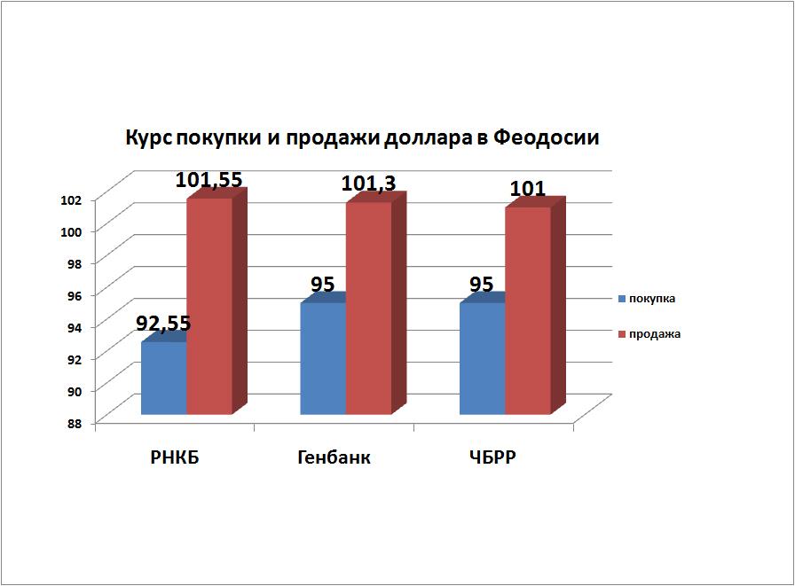 - в банке РНКБ сегодня, 6 октября 2023 года, продать 1 доллар можно за 92,55 руб., купить - за 101,55 руб. Евро тут покупают по 97,65 руб., продают по 106,65 руб. - на сайте Генбанка (ул. Земская) сообщается, что доллар у вас купят за 95 руб., продадут по 101,3 руб., евро купят по 100 руб., продадут по 106,3 руб. На сайте также упоминается о возможности купить в банке золото в слитках, - от 5 до 100 граммов. Слиток в 10 граммов обойдется вам в 70 тыс. руб. - в банке ЧБРР (ул. Земская) доллар у вас купят за 95 руб., продадут по 101 руб., евро купят по 102 руб., продадут по 106 руб. В банках также отметили, что курс покупки валюты может меняться в течение дня. Купить или продать гривну в банках Феодосии не получится. Подписывайтесь на Кафу в Facebook, страницу ВКонтакте и группу в Одноклассниках. А также на канал Youtube и Telegram. Новости по теме