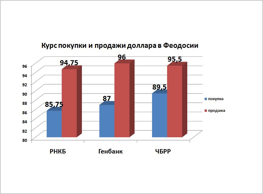- в банке РНКБ сегодня, 28 октября 2023 года, продать 1 доллар можно за 85,75 руб., купить - за 94,75 руб. Евро тут покупают по 90,8 руб., продают по 99,8 руб. - на сайте Генбанка (ул. Земская) сообщается, что доллар у вас купят за 87 руб., продадут по 96 руб., евро купят по 93 руб., продадут по 102 руб. На сайте также упоминается о возможности купить в банке золото в слитках, - от 5 до 100 граммов. Слиток в 10 граммов обойдется вам в 75 тыс. руб. - в банке ЧБРР (ул. Земская) доллар у вас купят за 89,5 руб., продадут по 95,5 руб., евро купят по 94 руб., продадут по 100 руб. В банках также отметили, что курс покупки валюты может меняться в течение дня. Купить или продать гривну в банках Феодосии не получится.