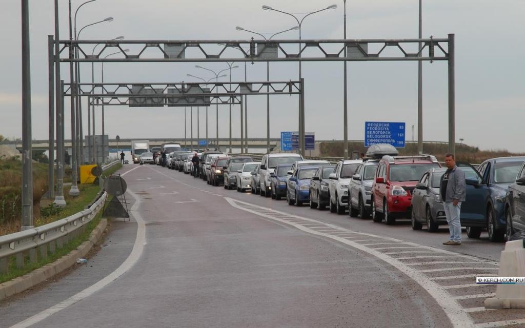 Перед Крымским мостом образовалась очередь автомобилей, желающих въехать в Крым