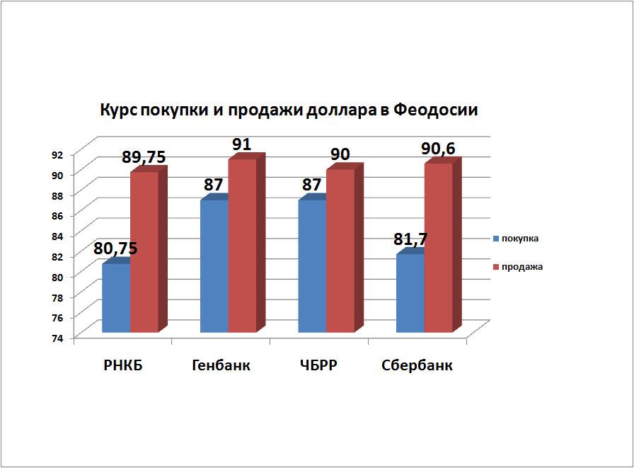 - в банке РНКБ (ул. Земская) сегодня, 22 января 2024 года, продать 1 доллар можно за 80,75 руб., купить - за 89,75 руб. Евро тут покупают по 88,60 руб., продают по 97,60 руб. - в Сбербанке (ул. Украинская) доллар у вас купят за 81,70 руб., продадут по 90,60 руб.; евро купят по 93,90 руб., продадут по 98,40 руб. В отделениях Сбербанка вы также можете сделать обмен рубля на английский фунт стерлингов и китайский юань. - на сайте Генбанка (ул. Земская, ул. Галерейная) сообщается, что доллар у вас купят за 87 руб., продадут по 91 руб., евро купят по 95,5 руб., продадут по 100 руб. На сайте также упоминается о возможности купить в банке золото в слитках, - от 5 до 100 граммов. Слиток в 10 граммов обойдется вам в 66 тыс. руб. - в банке ЧБРР (ул. Земская) доллар у вас купят за 87 руб., продадут по 90 руб., евро купят по 95 руб., продадут по 99 руб. В отделениях банка вы также можете сделать обмен рубля на китайский юань. В банках также отметили, что курс покупки валюты может меняться в течение дня. Купить или продать гривну в банках Феодосии не получится. Смотрите новости "Кафы" https://t.me/kafanew Подписывайтесь на Кафу в Facebook, страницу ВКонтакте и группу в Одноклассниках. А также на канал Youtube и Telegram. Новости по теме
