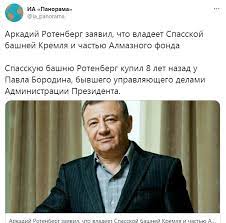 Кому принадлежит Боровицкая башня, через которую в Кремль въезжает Владимир Путин, Ротенберг не сказал, однако намекнул, что это известный предприниматель, раскрывать имя которого он считает некорректным.