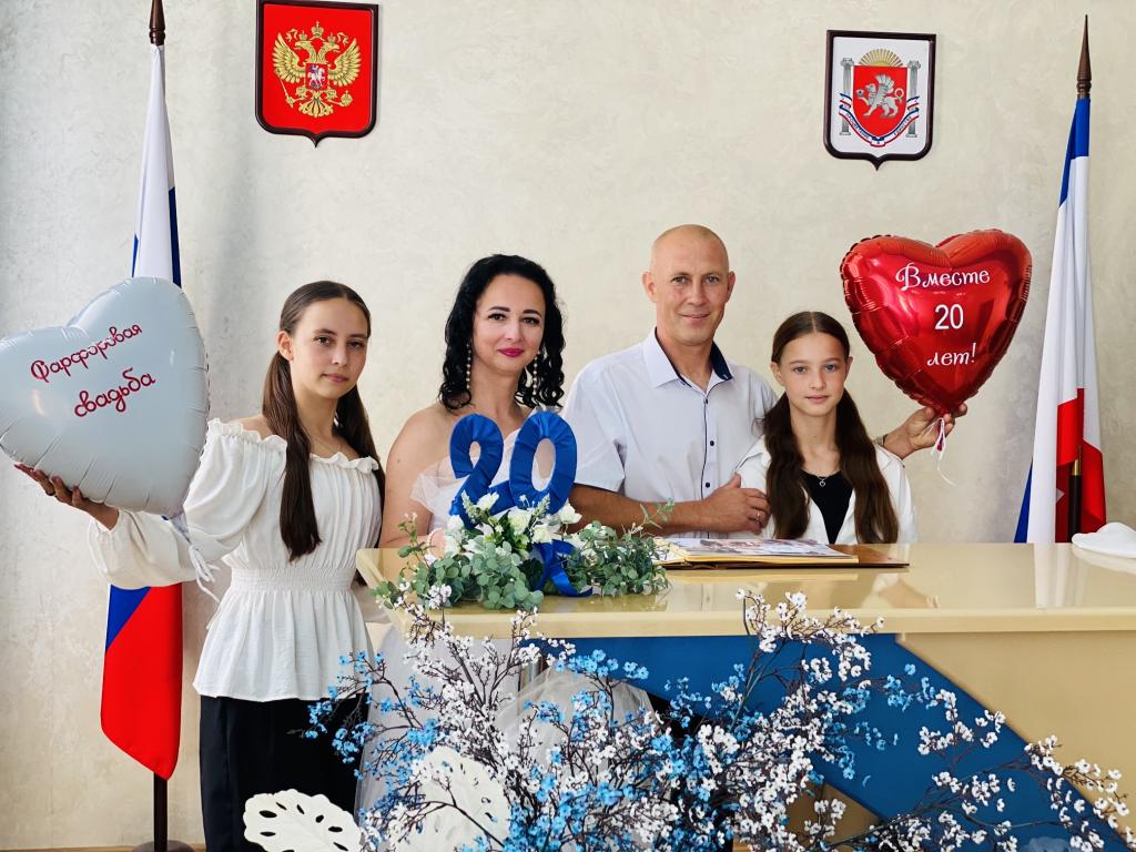 Главным богатством для Анастасии и Сергея Пичуговых, по их словам, является семья. Они вместе отмечают важные события, поддерживают друг друга в сложных ситуациях и всегда готовы прийти на помощь. На церемонии чествования супругов, Анастасия и Сергей увековечили этот особенный день, расписавшись в почетной книге юбиляров, а также получили памятный адрес и подарок от Феодосийского городского отдела ЗАГС. Анастасия и Сергей планируют через пять лет отметить серебряную свадьбу, а потом, через 25 лет, и золотой юбилей. С удовольствием будем их ждать!