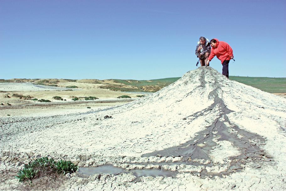 Керченский полуостров – радует искателей экзотики вполне реальными вулканами. Правда, они совсем небольшие, да и с виду ничего особенного: здоровенные лужи, наполненные грязью. Но с удивлением замечаешь, что в этих тихих омутах кто-то «дышит»: раз за разом жижа вздувается пузырем, который тут же лопается. А простецкие холмики – точь-в-точь настоящие вулканы, только в миниатюре. Невысокий, до двух метров, конус венчает крохотный кратер. Неожиданно он начинает клокотать: газ, выходящий из недр, выталкивает, подобно лаве, холодную жидкую глину. Она переливается через край и медленно стекает по склону. Зрелище завораживающее, но мирный облик сопок обманчив. Ученый Иван Пузанов в своей замечательной книге «По нехоженому Крыму» вспоминает случай, когда в трясину в мгновение ока провалился по горло его коллега. «Напрягши все силы, я рывком выдернул перепуганного товарища. При этом раздался звучный «чпок», подобный звуку, когда извлекают пробку из бутылки», – с юмором описывает ситуацию Пузанов. В окрестностях Керчи насчитывается более 50 грязевых вулканов. Самые крупные имеют собственные названия и историю. Так, весной 1914 года Джау-Тепе (в переводе – «вражий бугор») внезапно окутался паром, из него вырвались огромные языки пламени и взлетели фонтаны грязи. Люди сокрушались: не к добру! Так оно и сталось: вскоре грянула Первая мировая война. Узун-Сырт неподалеку от Карадага - «Длинный хребет» (так переводится название с крымско-татарского) - действительно выглядит, как высокий вал. Он дугой огибает просторную впадину, где расположено озеро Бараколь. У геологов нет определенного ответа на вопрос о происхождении урочища. По одной из гипотез, это типичная кальдера. Так называется большое углубление, образованное в результате мощного извержения: магматический очаг опустел, перекрывающий его слой горной породы осел, а стенки кратера оплыли. Аргументом в пользу вулканической версии может служить Бараколь. Водоём наполняется исключительно дождями, но вода в нём – солёная! Если предположить, что озеро занимает руины кратера, становится понятно, откуда взялась соль: вода растворяет рожденные вулканом минералы. В здешнем карьере добывали магматическую породу диабаз. После очередного взрыва открылась плоскость, запечатлевшая во всём великолепии стихийное бедствие юрского периода. Высокий обрыв сложен окаменевшей лавой. Она имеет оригинальную структуру. Мощный поток застыл не как единое целое, а состоит из множества обособлений, напоминающих подушки, баллоны, шары. Причудливая поверхность скалы очень похожа на извилины человеческого мозга. Эффектные части каменного ожерелья Южного берега Крыма имеют единое происхождение – вулканы, которым не суждено было появиться. Магма искала выход из глубин, но застряла в толще осадочных пород, лежащих на дне праокеана. В какой-то период вода отступила. Пласты песка и глины, покрывавшие застывшую лаву, превратились в песчаник и сланец. Под влиянием разных природных явлений они со временем разрушились, и гигантские «бусины» явились миру во всей красе. Картину грандиозного события можно созерцать на обращённом к морю склоне Кастели. Обрыв сформирован слоями, смятыми буквально в гармошку. Подобно всплескам на сейсмограмме, они зафиксировали невероятную мощь некогда бушевавшей здесь стихии. Донные о