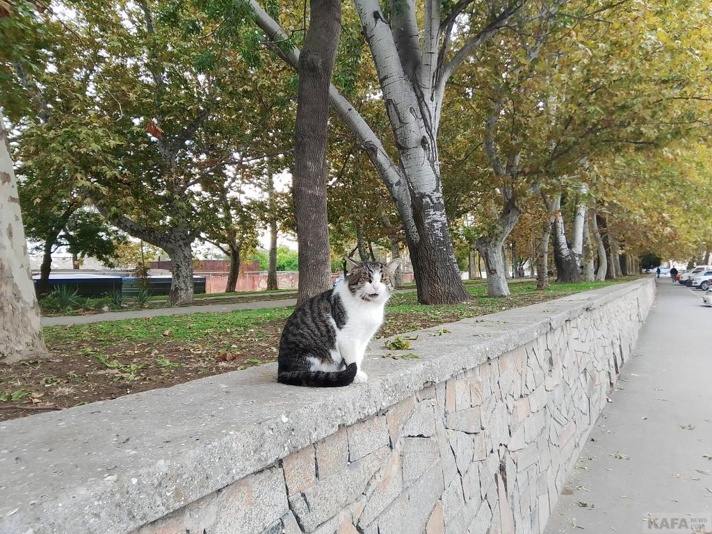 Октябрь неожиданно удивил нас холодом. И сегодня, наконец, включили в домах отопление (а в прошлом году, напомним, это было неделей позже). Сейчас мы отогреемся у теплых батарей и выйдем гулять. А пока пляжи совсем пустые, почти пустая набережная, ну и чистый горизонт. Деревья в скверах все никак не соглашаются на осень: стоят зеленые. Да, каштаны с коричневыми листьями, и понемногу падают листья с кленов. Но ощущения яркого осеннего облика Феодосии по-прежнему нет. Быстро расцветают на клумбах хризантемы, но кто-то уже дернул пару кустов в центре. Неожиданно много котов на улицах, им, видно, нравится осень.