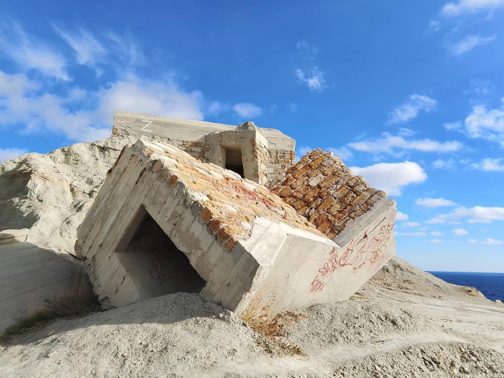 Напомним, год назад почта выпустила марку с изображением Ильинского маяка. В 1941 году, после захвата Феодосии, немцы рядом с маяком установили артиллерийскую батарею, но советский десант ее уничтожил. Тогда немцы на мысу построили систему укреплений, состоящую из ДОТов и орудийных позиций. Остатки этих укреплений сохранились до нашего времени. Сколько лет прошло, а все еще недоразрушились, хотя с каждым годом все страшнее выглядят. Зато тут чисто. И это удивительно, потому что народу тут бывает немало. Сказать, чтобы народ у нас культурнее стал, трудно, - полчаса пешком от Горбольницы до мыса Ильи вдоль забросанных пустыми банками и бутылками обочин убеждают в этом. Наверное, у маяка убирают. Там даже на смотровой площадке урна стоит. Молодцы! Чуть в сторону - кучка недостроенных дач для богатых времен Шайдерова. Крупный участок земли для строительства эллингов Феодосийский городской совет выделил известному застройщику Роману Лукичеву в 2008 году. Вскоре тут начались строительные работы. Застройщик планировал построить в районе мыса Ильи крупный курортно-рекреационный комплекс, в который должны были войти зал для приема делегаций, спальные корпуса пансионата (всего 65 строений), гостиница на 100 мест, танцплощадка и аквапарк, бассейн, теннисные корты, рестораны, яхт-клуб, дайвинг-центр и многое другое. Достроить и продать это так и не удалось, - вид там прекрасный, но слишком уж близко очистные... Так этот недострой и стоит уже больше 10 лет, разваливаясь быстрее, чем ДОТы времен войны. Маршрут 12 км, два с половиной часа быстрым шагом. Половина дороги - грунтовая, идти нелегко. По-прежнему на этом втором этапе много мусора и лающих собак "на самовыгуле". Удовольствие на 4+, но сходить стоит.