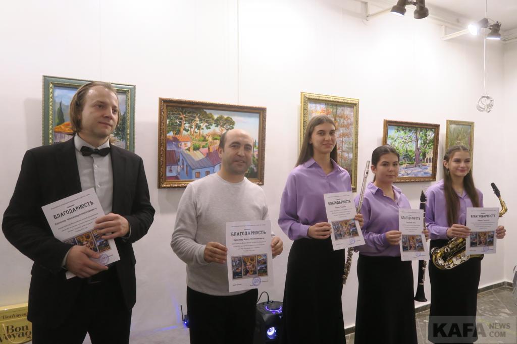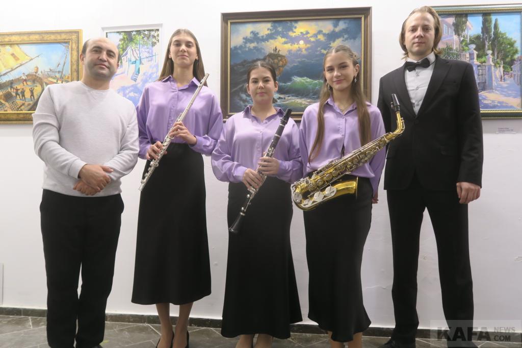 Как и положено настоящему вернисажу здесь звучали прекрасные стихи, песни и музыка. Поэтическую страничку открыла ветеран музейного дела и активист культурного фронта Феодосии Алла Ненада. Музыкальную часть взял на себя виртуоз и педагог Асан Халилов со своими воспитанниками и концертмейстер Александр Харланов. Юная саксофонистка Мария Гриценко подарила залу пьеску И. Шильцева «Хеллоу, мистер Сакс», флейтистка Маша Романюк – пьеску Я. Кларка «Гипноз», а Ниаль Халилова сыграла на кларнете «Интермеццо» А. Цфасмана. Завершился небольшой концерт романсом из кинофильма «Овод» от трио «М. Гриценко, Н. Халилова и М. Романюк». И, конечно же, был исполнен гимн Творческого Союза «Вдохновение» - песня под гитару «Как здорово, что все мы здесь сегодня собрались», поддержанная всем залом. Так открылась первая выставка его участников в гриновских стенах, а не замахнуться ли теперь «вдохновленным» художникам на главный храм изобразительного искусства Крыма – феодосийскую картинную галерею имени Айвазовского?