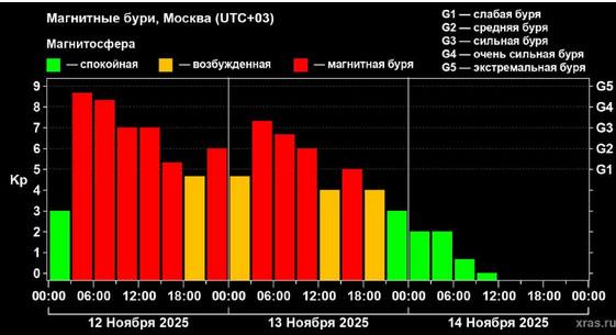 Длившийся на Земле на протяжении 42 часов геомагнитный шторм завершился, он стал вторым по силе за последние пять лет, сообщили в лаборатории солнечной астрономии Института космических исследований и Института солнечно-земной физики. "Геомагнитное событие завершено. Оно стало вторым по силе за последние пять лет. Исходя из поступающих данных, буря окончательно закончилась", - говорится в сообщении. По данным лаборатории, геомагнитный шторм продолжался 42 часа и стал самым сильным в текущем году. Там сообщили, что в текущем солнечном цикле данное событие стало вторым по силе после бури высшего уровня G5.0 (по пятибалльной шкале) 10-12 мая 2024 года. "На данный момент сохраняется остаточная повышенная скорость солнечного ветра, около 600 км/с, превышающая обычные значения примерно в 1,5 раза, но, за исключением этого, все параметры межпланетной плазмы вернулись в норму", - сообщили ученые. "На Солнце в данный момент наблюдается очень сильная асимметрия активности. Почти все крупные центры собраны на одной половине звезды, которая из-за вращения Солнца то поворачивается в сторону Земли, то уходит на обратную сторону. В данный момент к Земле выходит спокойная солнечная сторона, и это дает надежду на как минимум недельную или даже двухнедельную передышку", - сказано в сообщении лаборатории. Подписывайтесь на Кафу в Facebook, страницу ВКонтакте и группу в Одноклассниках. А также на канал Youtube и Telegram. Новости по теме