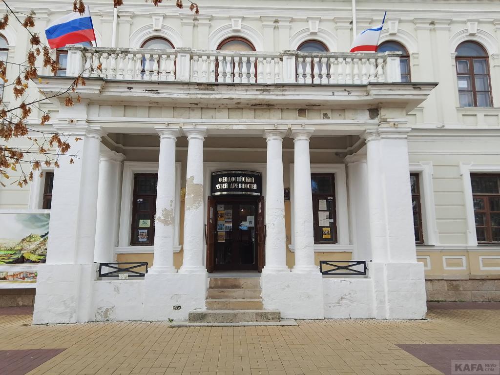 А мы уже на проспекте Айвазовского (заметили, что мы просто ходим по городу по стопам Айвазовского). И всюду цветы, хризантемы. Вот и Привокзальная площадь (а справа уже начинают монтировать каток, - ну как в прошлом году был, помните?). А дальше Музей древностей, галерея Айвазовского, - и мы вернулись к Музею Грина.