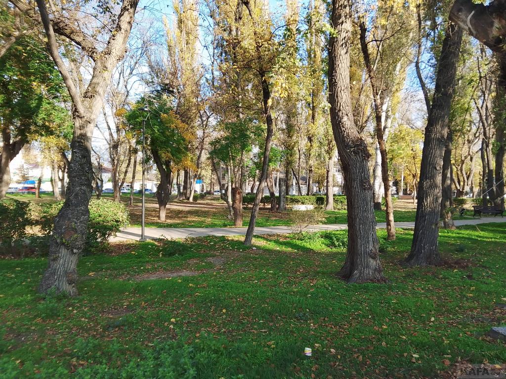20 метров к морю, - и вот он, Морсад. Многое изменилось за год. Какие-то деревья вырубили, новые кустики взамен высадили, новая ограда, новая детская площадка, - есть на что посмотреть. Поворачиваем налево на улицу Горького (ее недавно отремонтировали), но мы с вами идем по платановой аллее. Машем рукой черепахам из Антресоли, радуемся памятнику Черепахе. И вот она, осень на платановой аллее.