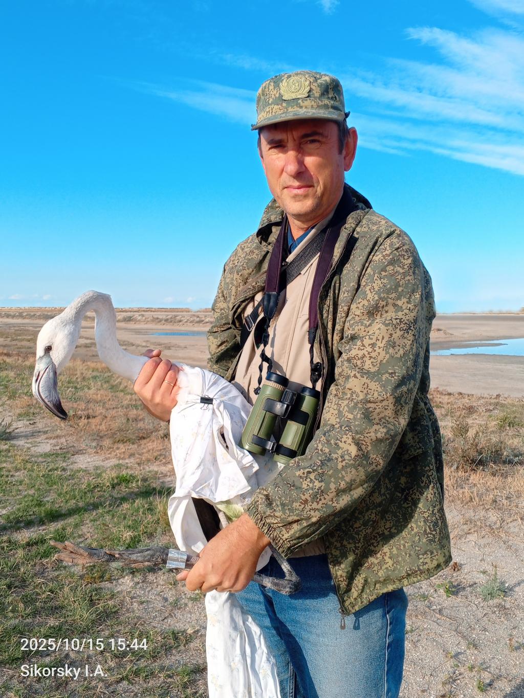 Преодолев расстояние в 3000 км птицу доставили в Крым. В середине октября Кеша был выпущен на побережье Восточного Сиваша, где уже второй год находится колония розового фламинго и зимуют эти краснокнижные птицы.