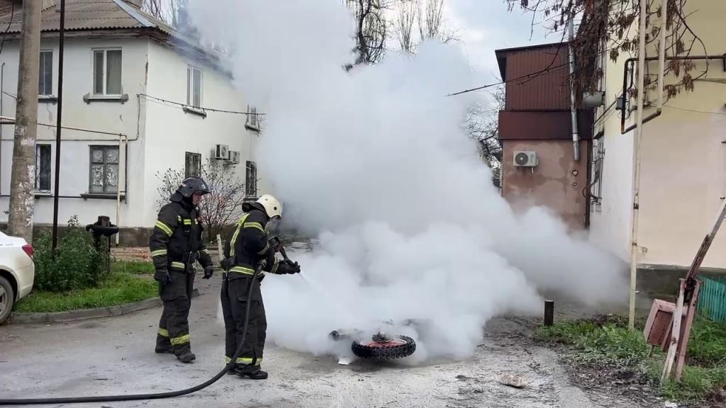 Сотрудники 19 пожарно-спасательной части прибыли на вызов и ликвидировали возгорание припаркованного мотоцикла на площади 2 м кв.