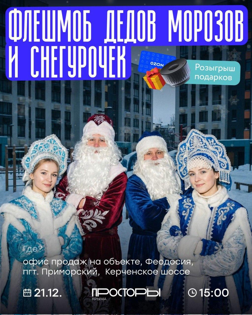Важное правило: чтобы участвовать в розыгрыше - нужно быть в костюме деда мороза, либо снегурочки. Это сделает вечеринку по-настоящему атмосферной! Когда: 21 декабря (воскресенье). Во сколько: регистрация в 14:30, начало мероприятия 15:00-16:00 Где: Площадь возле офиса продаж Просторы Крыма, пос. Приморский, ул. Керченская https://yandex.ru/maps/-/CLrXZPiM Что делать? Готовить костюмы Дед мороза или Снегурочки, прийти 21-го за эмоциями и подарками! Ждем именно тебя. Покажи свой стиль, забудь про рутину и зарядись праздником вместе с нами! P.S. Приведи друга в костюме — будет еще веселее! Подписывайтесь на Кафу в Facebook, страницу ВКонтакте и группу в Одноклассниках. А также на канал Youtube и Telegram. Новости по теме