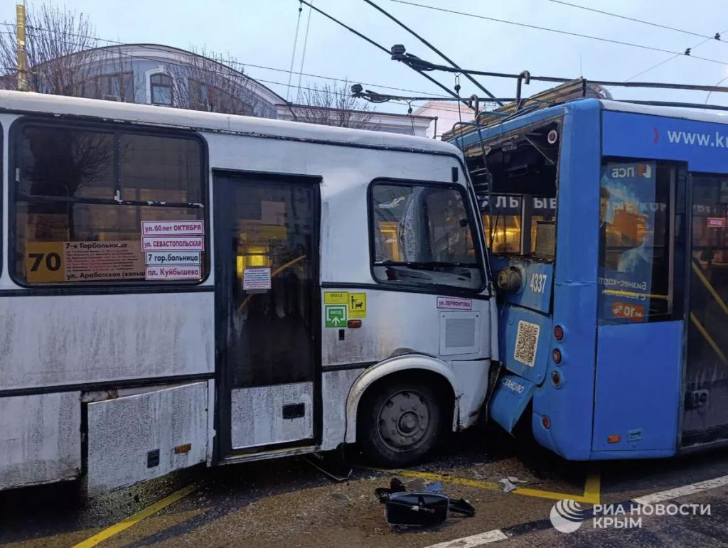 В центре Симферополя на остановке столкнулись троллейбус и два автобуса