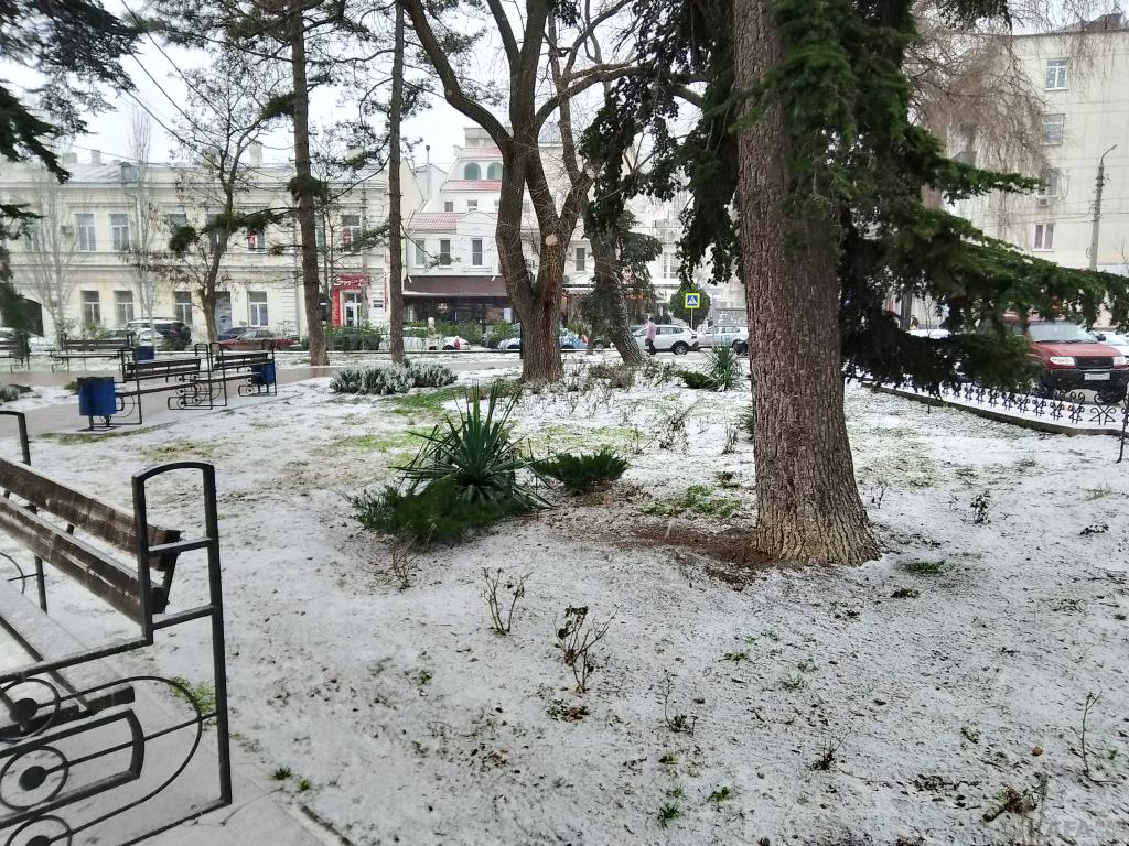 МЧС объявило по Крыму экстренное предупреждение об опасных гидрометеорологических явлениях на 15 января. Согласно прогнозам синоптиков, в регионе ожидается мокрый снег, местами очень сильные осадки, на дорогах гололедица, сообщало МЧС Крыма, - и не ошиблось! Феодосию только начало засыпать снегом, но уже кто-то играет в снежки. Ждем снеговиков! У моря по-прежнему 15 лебедей, зимующих в заливе, снегу радуются, еще больше - еде, которой их кормят заботливые феодосийцы.