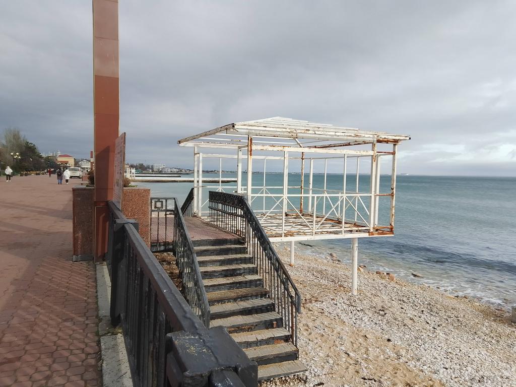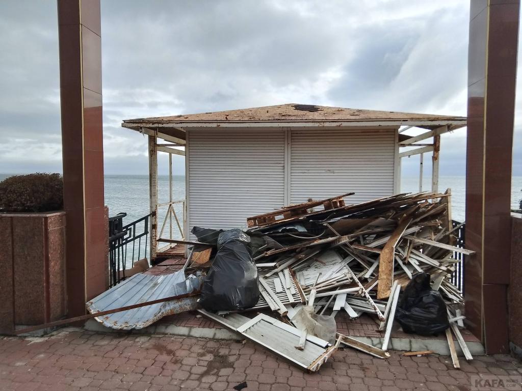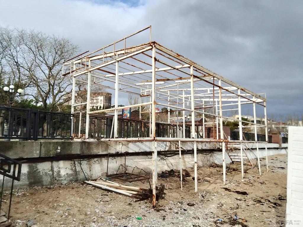 Уже разобрали шесть кафешек, подбираются к "Хинкалычу". - "Ветерок", - он, видимо, и останется, поскольку по информации главы Феодосии Владимира Кима, городу не удалось доказать в суде, что выделение этой земли в пляжной зоне незаконно; - "Хинкалыч" - к этому подбираются, увидим, снесут ли; - "Морячка" - это кафе работает, хотя по соседству, где был "Морячок", слышны звуки строительных работ (разбирают его). Осенью, комментируя, останется ли "Морячка" на набережной, глава Феодосии уверенно говорил, что нет, этого кафе там не будет. Что планируется сделать на набережной: • поправить плиточное покрытие набережной в тех местах, где оно просело; Бюджет реконструкции – 95 млн. рублей. Напомним, в администрации обещали, что окончание работ на набережной запланировано ко Дню города, - это конец июля.