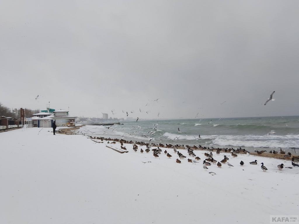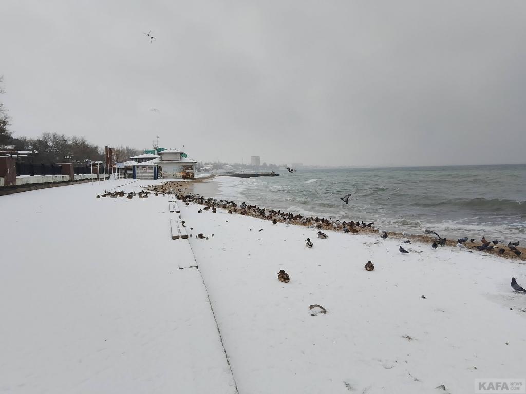 Феодосия, день сурка: снова снег, а море штормит (фоторепортаж)