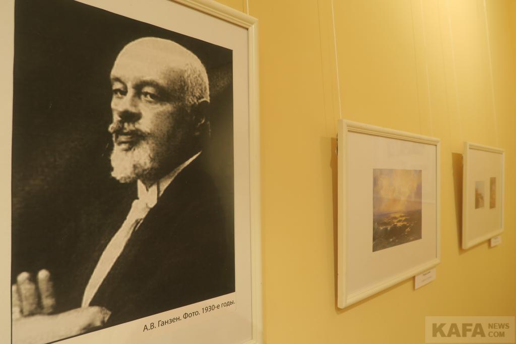 Алексей Ганзен был награжден Императорскими и Царскими орденами Святой Анны и Святого Станислава, медалью «300-летия царствования Дома Романовых», французским знаком отличия «Offizier de Academie». Художник-маринист по должности имел чин Надворного советника. Его творческое наследие насчитывает более трех тысяч картин, но на территории современной России сохранилось совсем немного произведений. В коллекции феодосийской картинной галереи имени Айвазовского находится двадцать четыре произведения Алексея Васильевича (пять живописных, остальные – графические). Экспозиция 150-летия Ганзена знакомит со многими из них. Тут и крупноформатное полотно «Море», и картина «Восход Луны» (фанера, масло), и великолепные акварели: «Замок у реки», «Скала у косогора», «Осенний пейзаж с домами», «Уголок Днепра», «Залив с освещенной скалой», «Неоконченный пейзаж», «Корабль на море», «Дача Равицкого». А также цветная монотипия «Пейзаж с березками» и морские рисунки сепией: «Море», «Морской берег», «Штиль» и «Море в хмурый день». Выставка дополнена репродукциями, коллажем – триптихом «Одесса - Санкт-Петербург – Дубровник» и двумя портретами Алексея Ганзена. Первый – фотографический 1930-х годов; второй – скульптурный, работы известного монументалиста Леопольда Бернштама (бронза, литье, 1909).