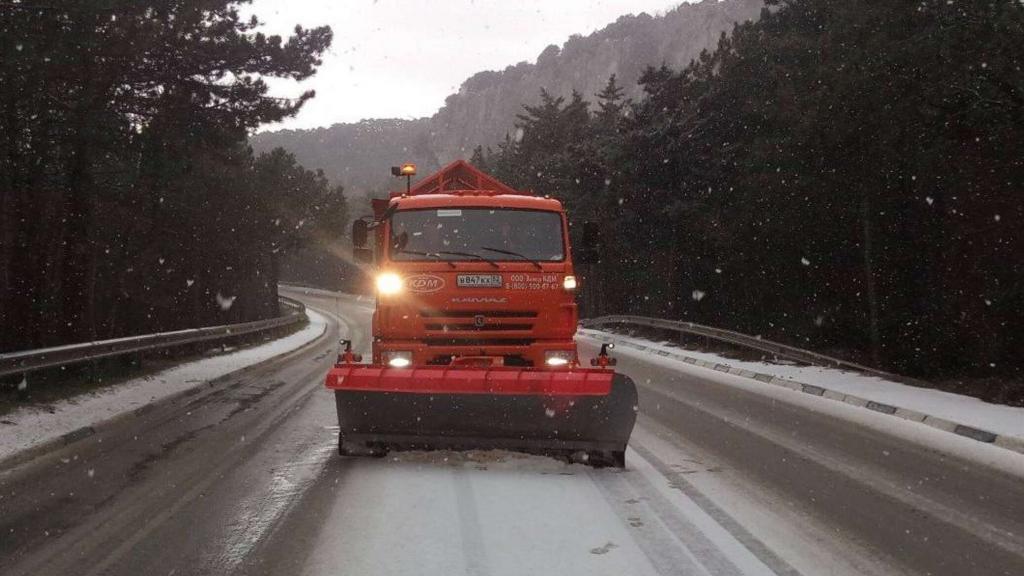 В Крыму снова выпал снег, на дорогах работает почти сотня спецмашин