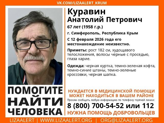 Внимание! Помогите найти человека! Приметы: рост 182 см, худощавого телосложения, волосы черные с проседью, глаза карие. Он нуждается в медицинской помощи, может находиться в вашем районе. Если вы что-то знаете о его местонахождении, звоните 89788445934 или 89788182979 Подписывайтесь на Кафу в Facebook, страницу ВКонтакте и группу в Одноклассниках. А также на канал Youtube и Telegram. Новости по теме