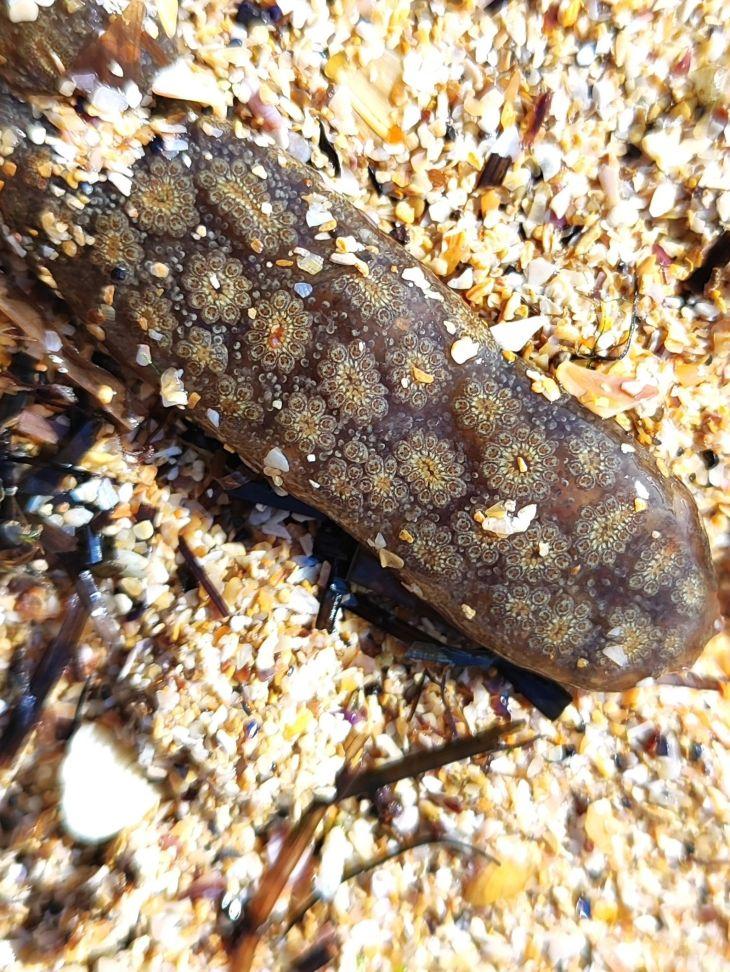 Вот такая "неведома зверушка" была встречена очевидцами в полосе прибоя у берегов Крыма. Как сообщают специалисты это может быть колониальная оболочковидная асцидия, также известна как звездчатая оболочка, звездчатая асцидия или золотистая звездчатая оболочка. Она крепится на водоросли, по ощущениям упругая, если прикоснуться может слегка сокращаться и при контакте возникает ощущение "покусывания".