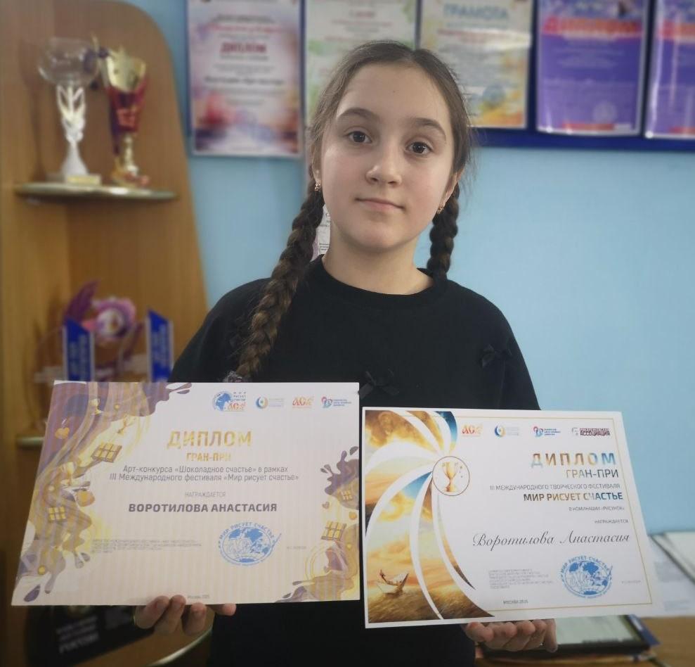 «Искусство способно создавать моменты абсолютного счастья, оно пробуждает чувства, которые остаются с нами навсегда», – говорит идейный вдохновитель Международного конкурса «Мир рисует счастье», руководитель Департамента счастья Ассамблеи Народов Мира Марина Волкова. Участие в конкурсе может быть замечательным опытом, однако быть победителем – это что-то особенное. Когда человек становится победителем, он достигает высот успеха, обретает не только новые навыки и знания, но и новые возможности для своего будущего. Победа в конкурсе означает, что твой труд и усилия были оценены, и это приносит особую радость и удовлетворение. Мы поздравляем с грандиозной победой – ГРАН-ПРИ в III Международном конкурсе «Мир рисует счастье» Анастасию Воротилову, участницу студии изобразительного творчества «Акварельки» Насыпновского центра культуры и досуга, и ее руководителя Ольгу Андрушкевич! В рамках конкурса проходил еще один, АРТ-Конкурс «Шоколадное счастье», и снова победа! И снова ГРАН-ПРИ! А это уже не может быть случайностью или удачей.