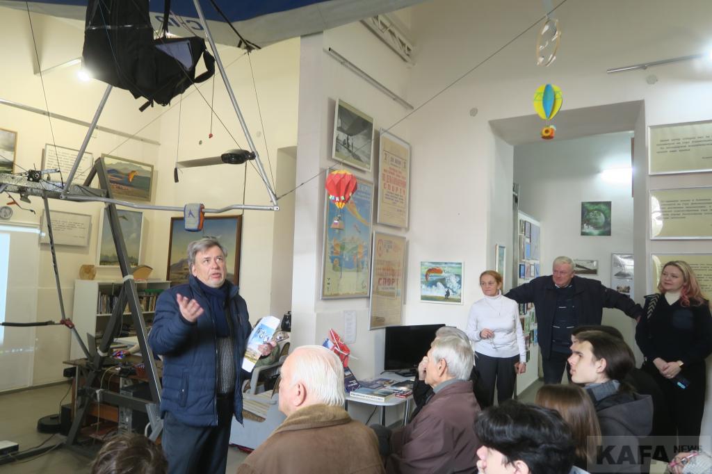 Обо всем этом и рассказала собравшимся на открытии выставки руководитель музея Ольга Силевич. А в день рождения Антонова сюда пришли все, кто не равнодушен к авиации и космосу, от мала до велика. Среди гостей ветераны авиакосмической отрасли, летчики-испытатели, настоящие и будущие космонавты, авиаторы, дельта и мотопланеристы. Рассказ об великом конструкторе Антонове продолжил председатель Клуба любителей истории Феодосии Константин Виноградов и все, кому есть, что поведать о небе. Особенно тут стоит отметить энтузиастов и ветеранов поселка Приморский, известного своей непосредственной причастностью к авиа и космическим испытаниям. Далее гостям музея была предоставлена возможность проверить свой вестибулярный аппарат на настоящем «космическом» тренажере и мастер-класс по изготовлению бумажных самолетов конструкции Антонова.