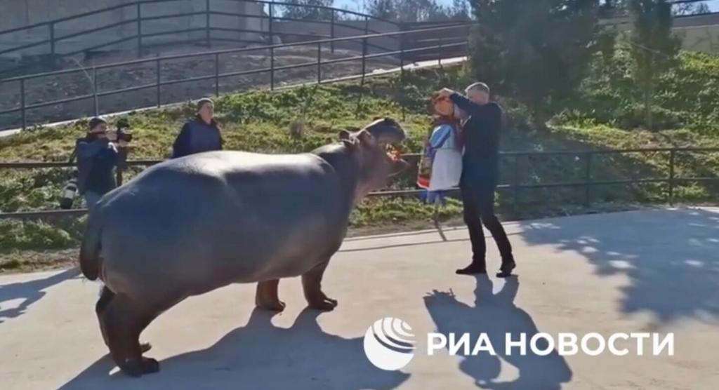 Бегемот в Крыму съел чучело Зимы на празднике Масленицы