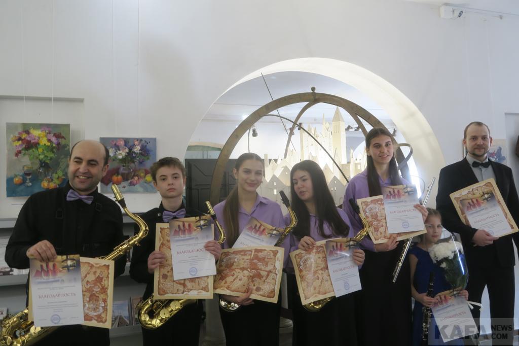 Ну, а вернисаж «Музыка весны» это еще и настоящий концерт от любимца публики, виртуоза и педагога Асана Халилова и его воспитанников. И первый его номер – «Тема любви» Энни Морриконе от ансамбля «Сюрприз». Солистка Мария Романюк, флейта. Далее – «Ария» Александра Виммера в исполнении маленькой кларнетистки Полины Харлановой. «Интродукция» Карла Вебера, на кларнете Ниаль Халилова. Саксофонист Дима Греков сыграл «Печальный саксофон» (Ирина Шильцева). И снова флейта Марии Романюк – Габриэль Форе «Фантазия для флейты и фортепиано». «Венецианский фестиваль» Жюля Демерссмана на саксофоне исполнила Мария Гриценко. Завершился концерт «Ноктюрном» Важи Азарашвили от ансамбля саксофонистов «Дюшес» под управлением и при участии Асана Халилова. Концертмейстером всей программы выступил Александр Харланов.