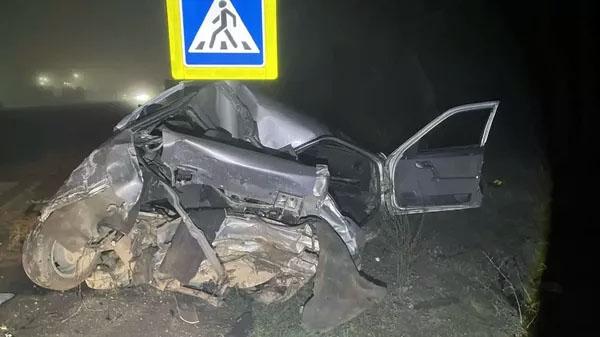 В Крыму ВАЗ отбросило на столб после столкновения с Mercedes