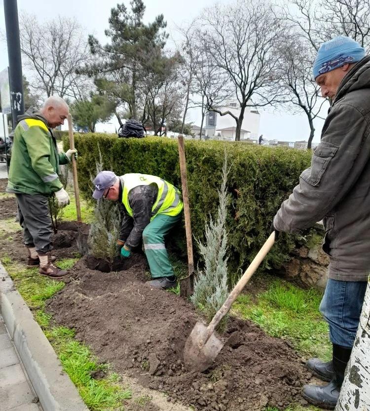 Работники «Феодосийской службы благоустройства» высадили хвойные растение на проспекте Айвазовского.