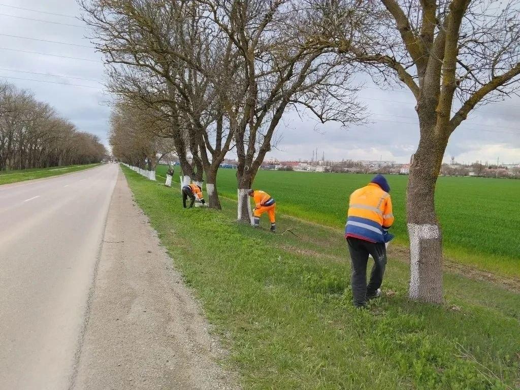 Крымские дорожники приступили к побелке деревьев вдоль трасс