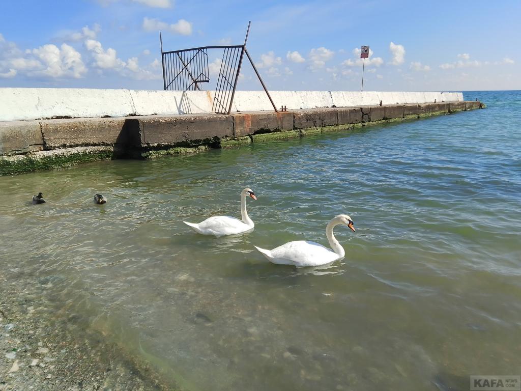 Пара лебедей решила вернуться в Феодосию (фото+видео)