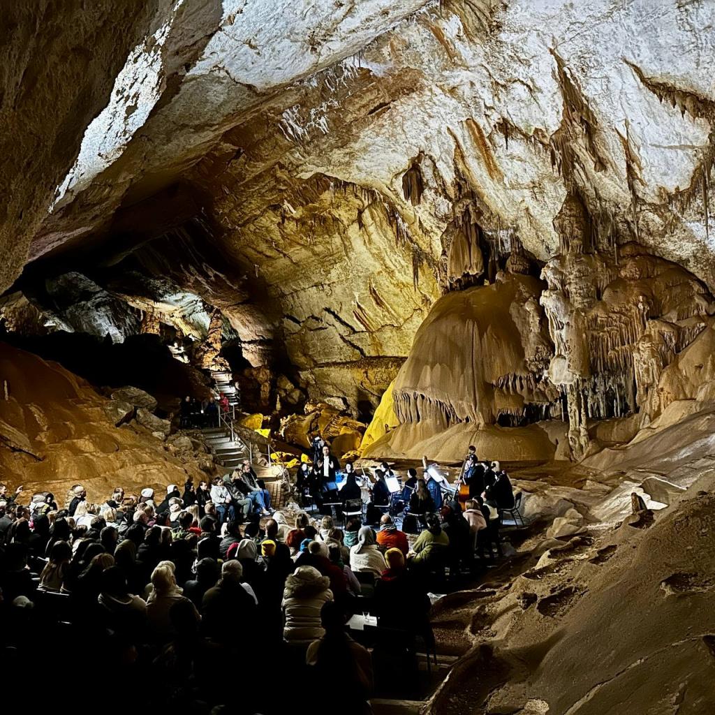 Приглашаем вас на открытие нового концертного сезона там, где время течет иначе. В самом сердце горного массива, в легендарной пещере «Мраморная», снова зазвучит живая музыка. 18 апреля в 16:00 Камерный оркестр «Новая гармония» под руководством главного дирижера Дениса Карлова представит новую программу «Звуковой сплав 6». Это не просто концерт. Это диалог человека с природой, где тысячелетние сталактиты и уникальная акустика пещеры становятся полноправными участниками оркестра. Вас ждет «сплав» классики, современных мотивов и невероятной атмосферы подземного мира.