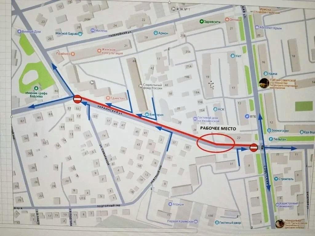 В связи с проведением работ 28 апреля с 09:00 до 17:00 на улице Украинской вводится одностороннее движение транспорта.