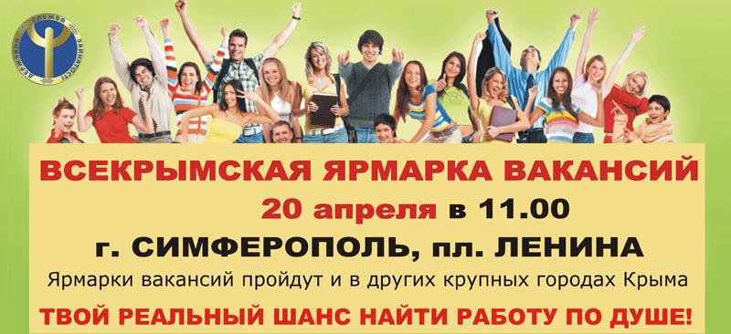 20 апреля в 11:00 на площади возле Дома Офицеров Флота, ул. Куйбышева, 21, в рамках Всекрымской ярмарки вакансий состоится городская ярмарка вакансий. За дополнительной информацией обращаться в отдел взаимодействия с работодателями центра занятости (кабинет №10) или по тел.: (06562) 3-01-04, 066-9411338 Подписывайтесь на Кафу в Facebook, страницу ВКонтакте и группу в Одноклассниках. А также на канал Youtube и Telegram. Новости по теме